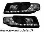 E-Mærket Kvalitets Forlygtesæt sort Dayline, for manuel og elektronisk lygteregulering.