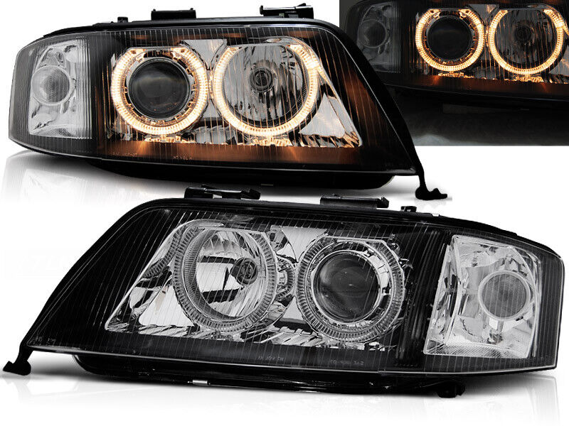 Audi A6. Angel Eyes. Forlygtesæt med blinklys sort H7-H7. 04.97 -07.2001