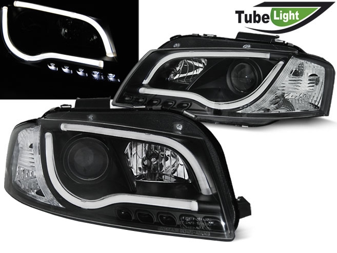 Audi A3. LED TUBE Sort Forlygter Med Blinklys H7-H1. 4.2003-7.2008