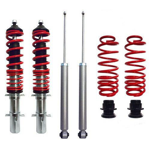 4 x Gevind standard fjederbene monteret med dobbeltfjeder system, manchet og stopklods,