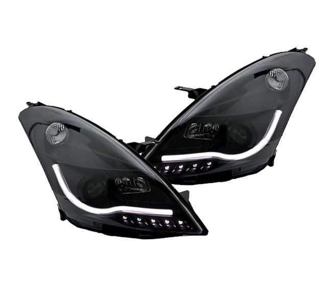 Sort Forlygtesæt med LED Light Tube som godkendt kørelys