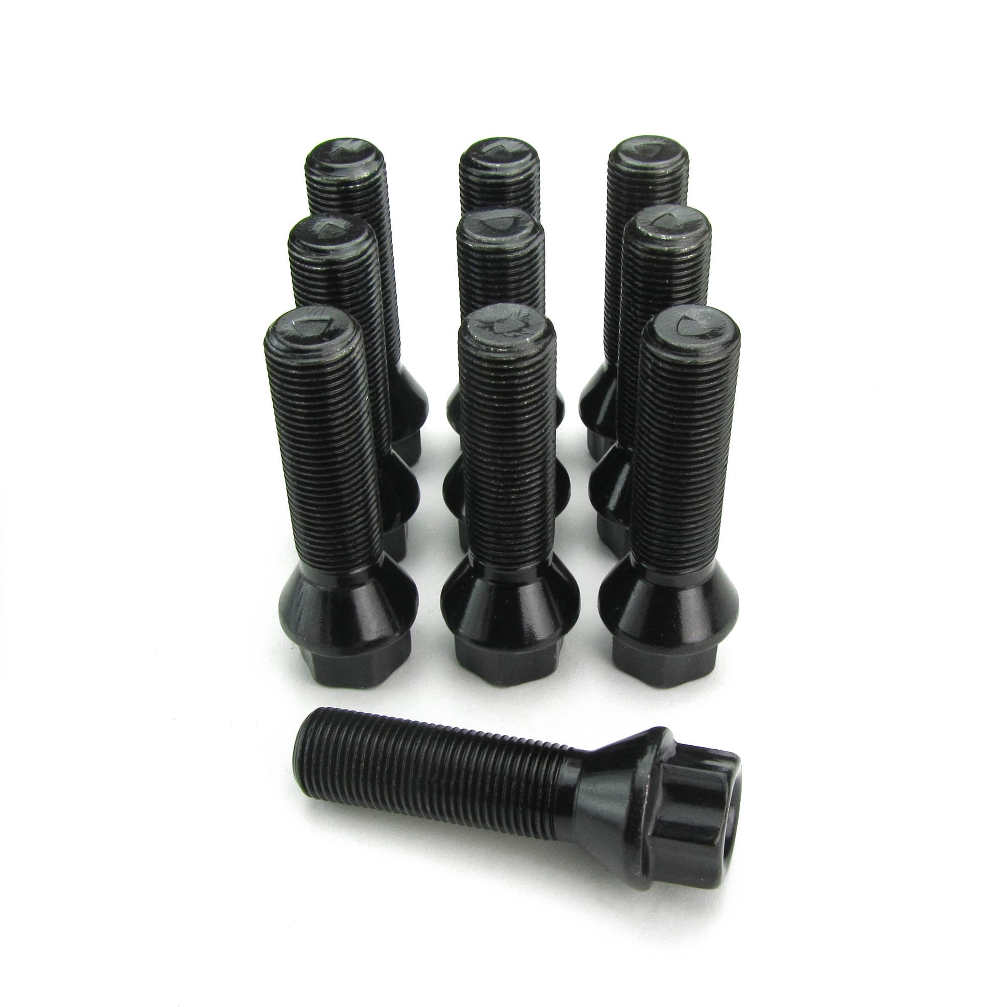 Hjulbolt sort M14 X 1.25 X 43 Keglehoved pakket af 10 stk