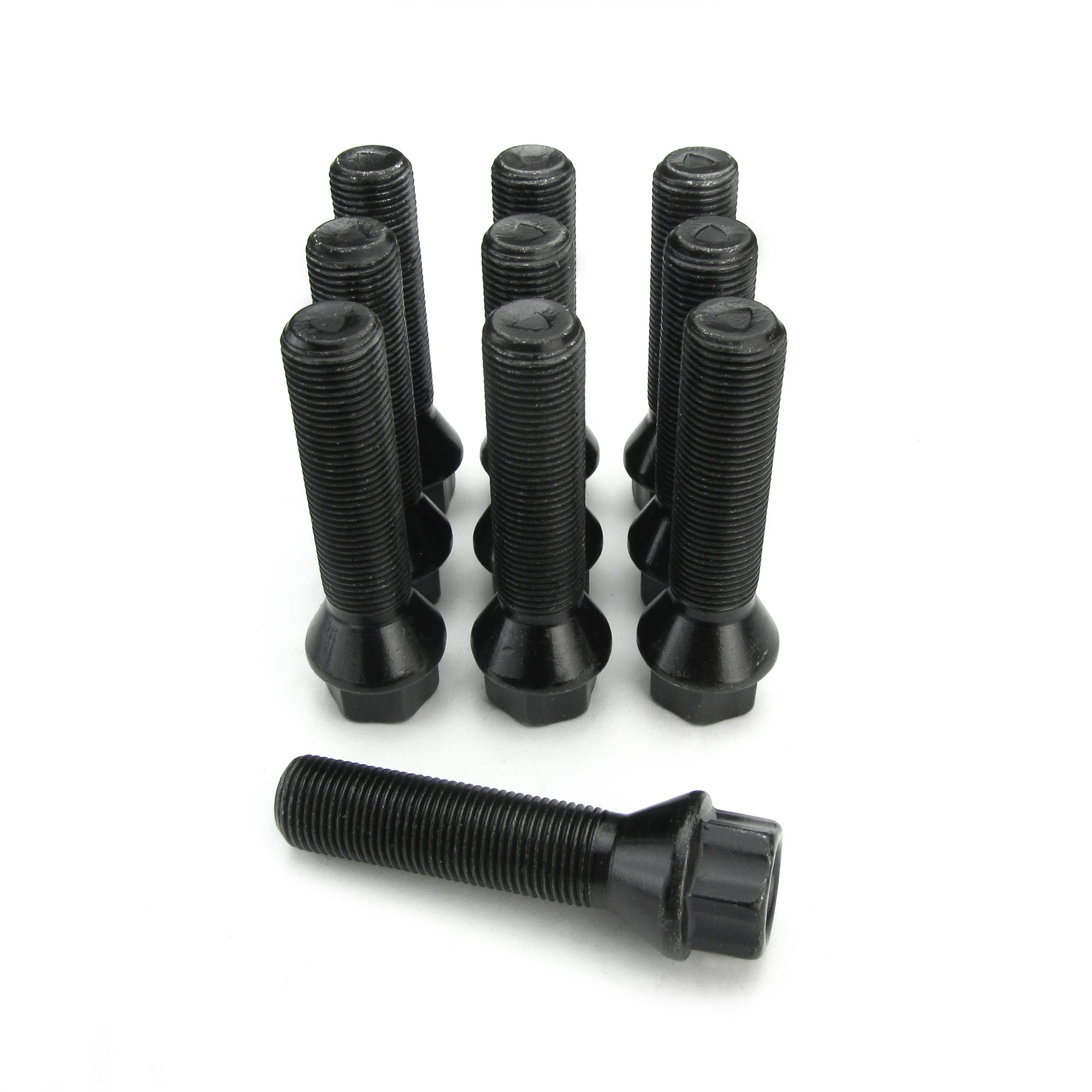 Hjulbolt sort M14 X 1.25 X 50 Keglehoved pakket af 10 stk