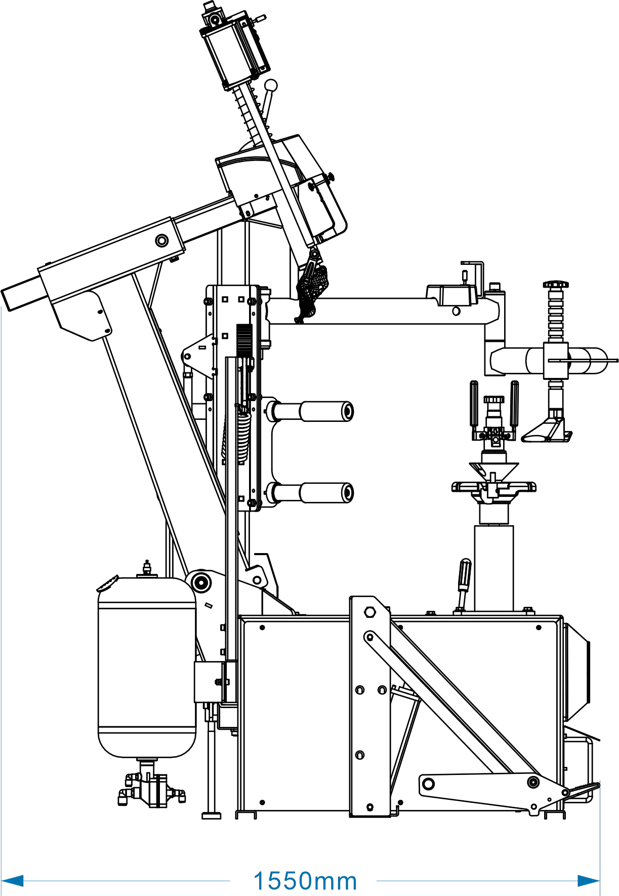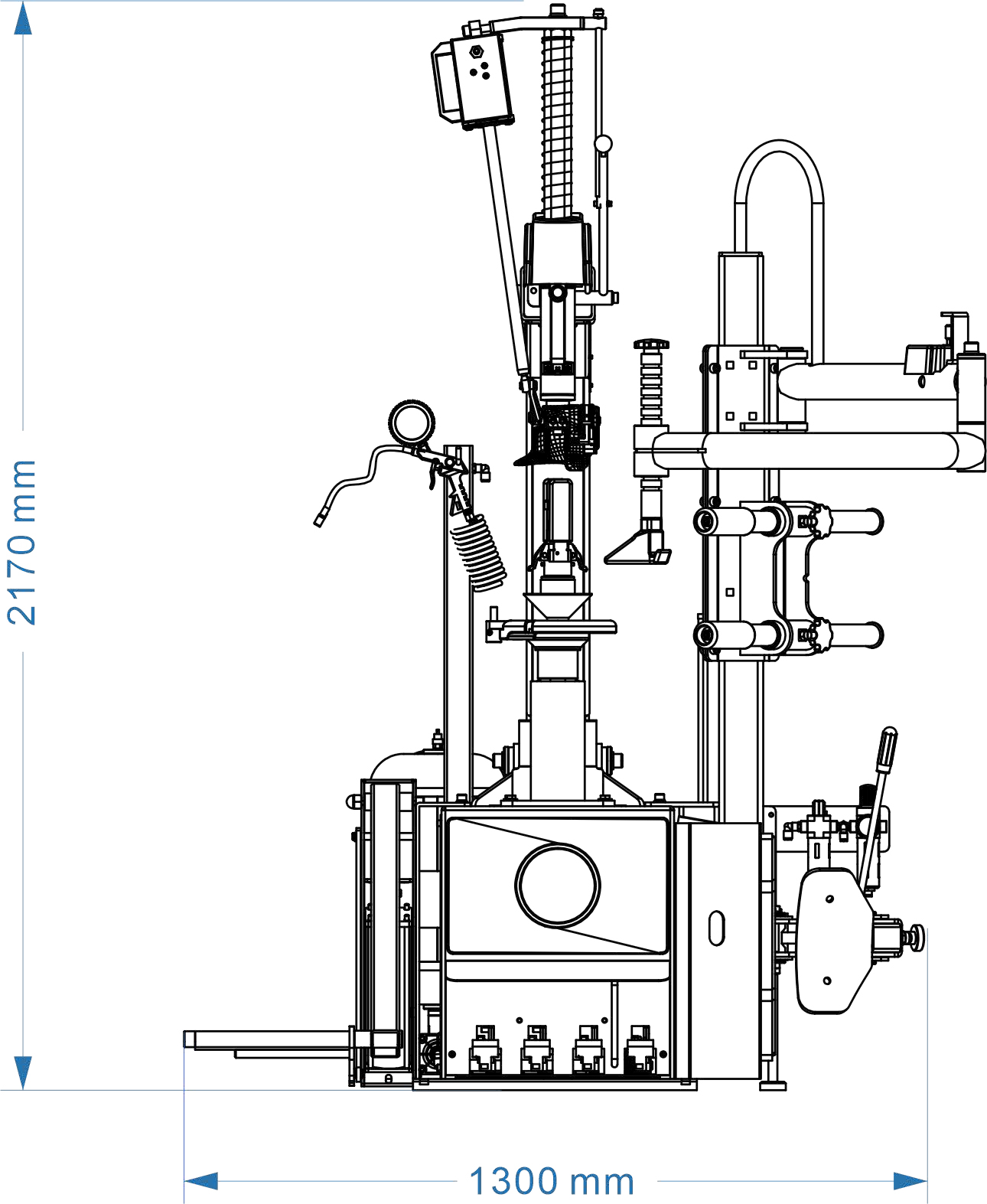 Maskinens robuste konstruktion inkluderer en ekstra kraftig pneumatisk vippesøjle, der sikrer stabilitet selv under krævende opgaver og gør maskinen velegnet til intensiv, daglig brug.