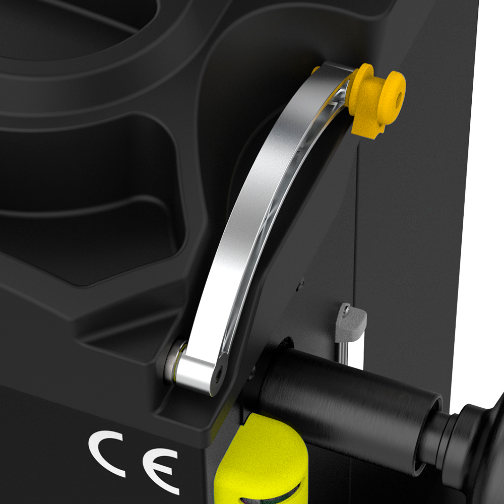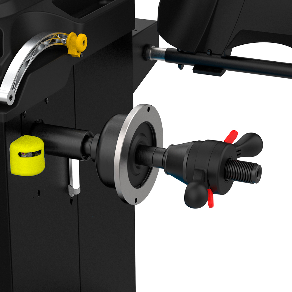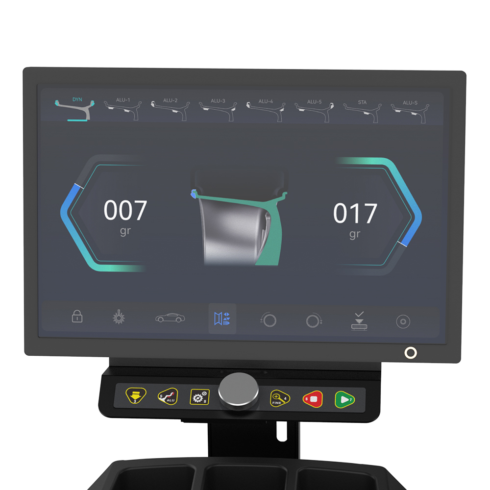 • Automatisk positioneringslås, der standser hjulet ved ubalancepunktet for montering af vægtklodser.